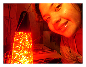 The fluorescent light in my room thought it would be ace to conk out on me yesterday; hence, I spent the night under a desk lamp and a pretty red glitter lamp. Doesn't it make me look like a creep? She-devil!